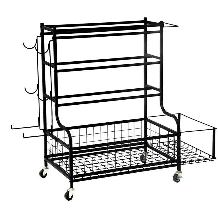 Na stojan lze uložit fitness vybavení, jako jsou podložky na jógu, pěnové válce, bloky na jógu, kola na jógu, činky, kettlebelly a odporové gumy. Pro vaše pohodlí je součástí dodávky několik háčků a úložných košů.