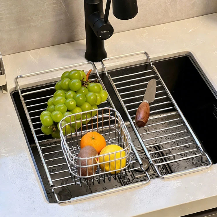 3. Dočasné uložení:Během vaření můžete do košíku umístit nakrájené suroviny, misky s přísadami k vaření atd. Využijte prostor nad dřezem k dočasnému uložení, čímž ušetříte místo na pracovní desce.